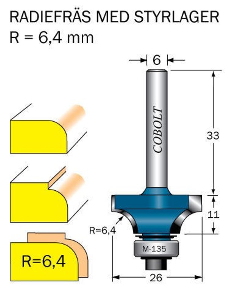 Cobolt Avrundningsfräs R=6.4, D=25,8