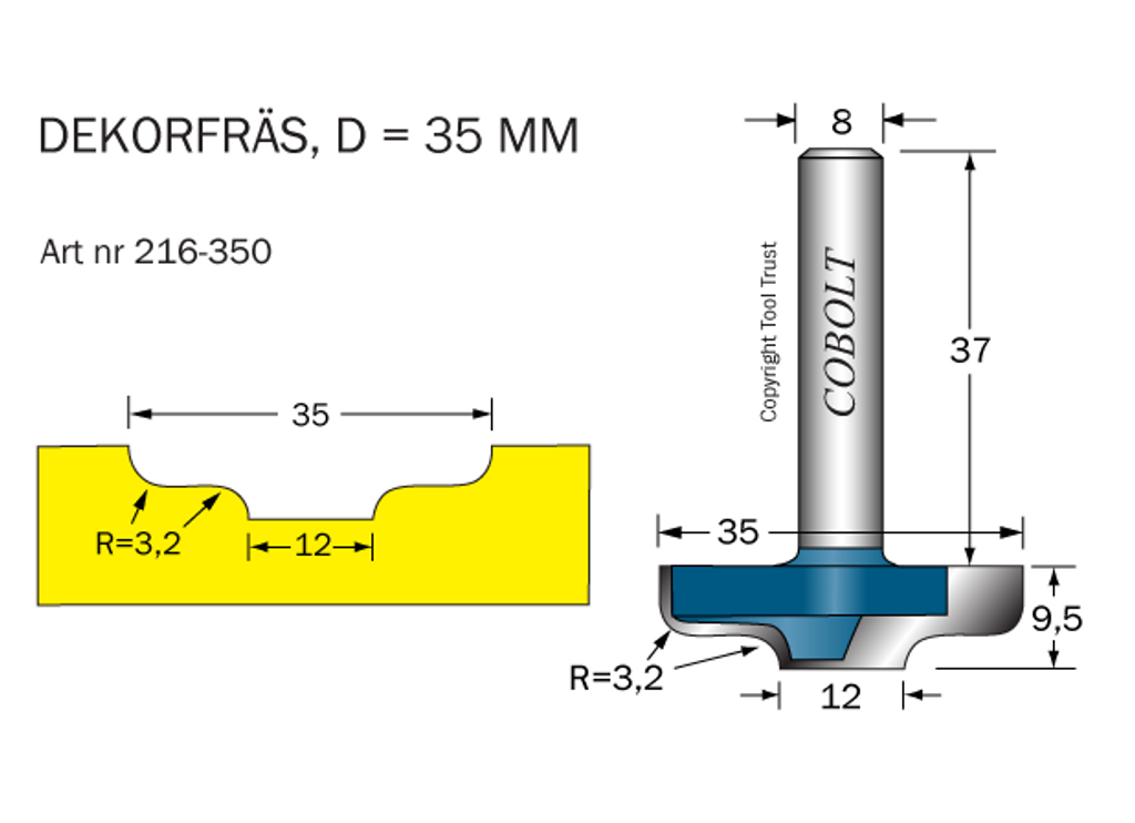Cobolt Dekorfräs D1=35 R=32 D2=12