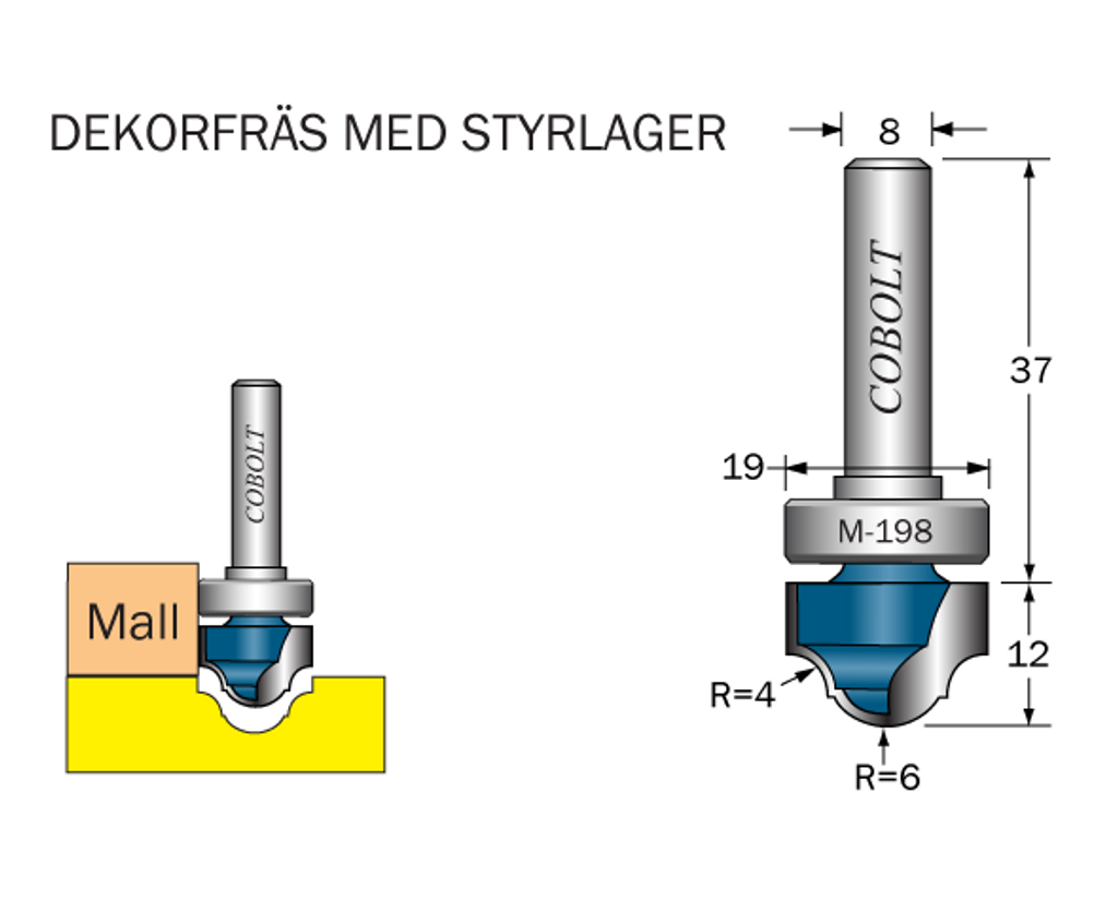 Cobolt Dekorfräs D=19 R1=4 R2=6 L=12 S=8
