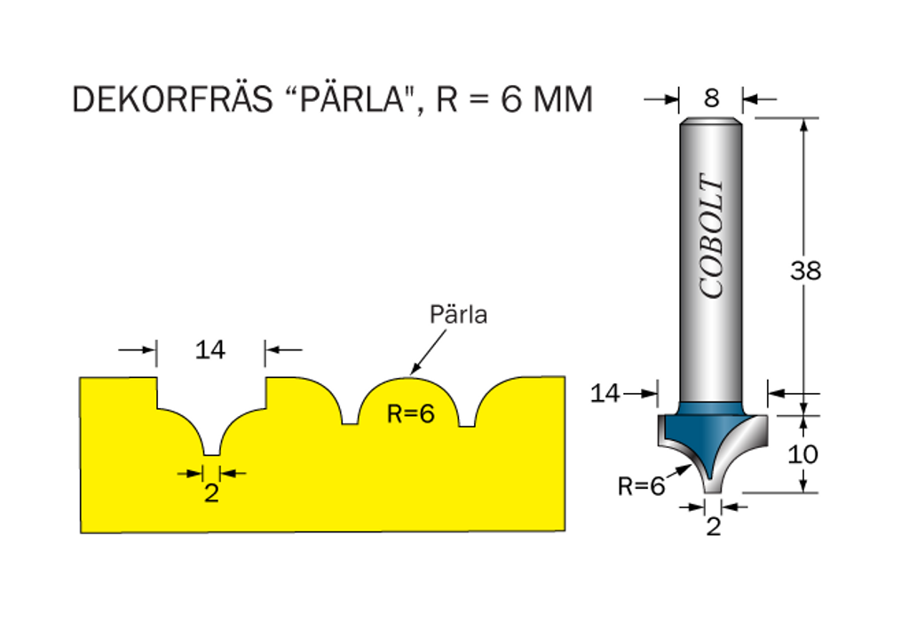 Cobolt Dekorfräs R=6 D=14 S=8