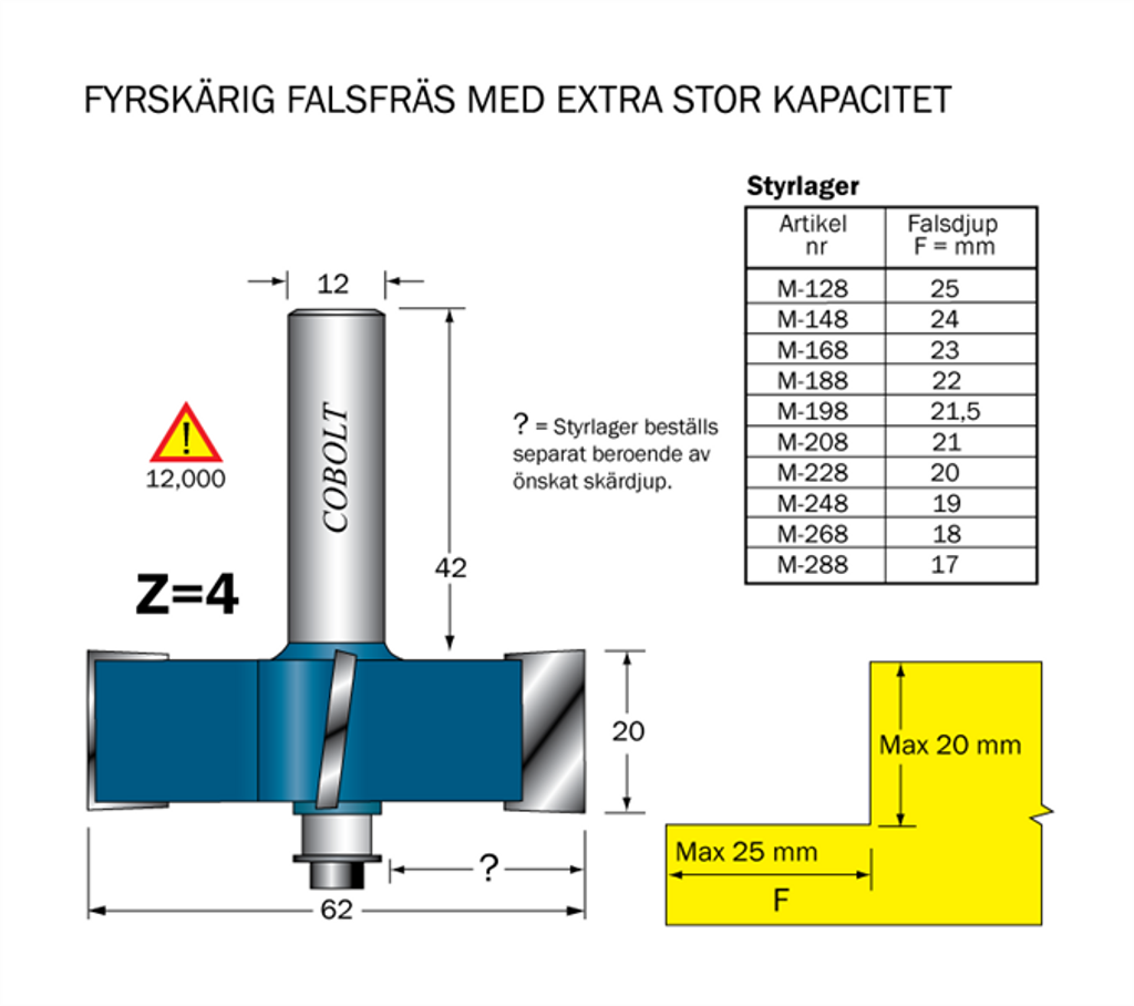 Cobolt Falsfräs Z=4 L=20 D=62 S=12 SL=42