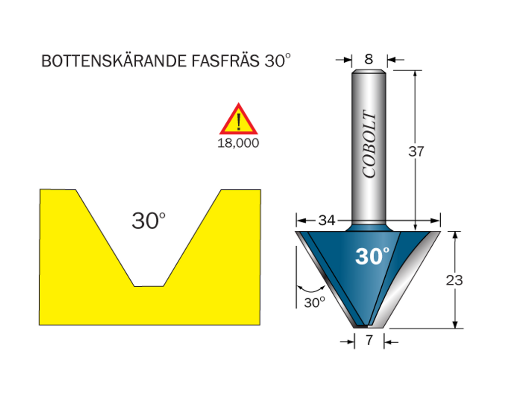 Cobolt Fasfräs 30° L=23 D1=34 D2=7 S=8