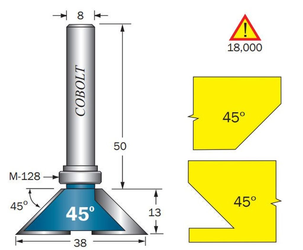 Cobolt Omvänd fasfräs 45 grader med skaftmonterat styrlager