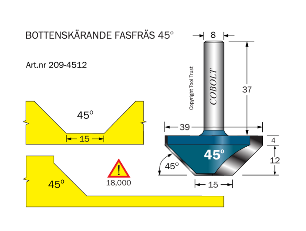 Bottenskärande fasfräs 45 grader.