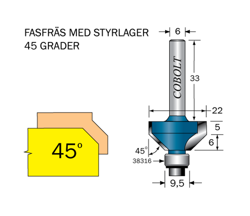 Cobolt Fasfräs 45° L=6 D=22 S=6