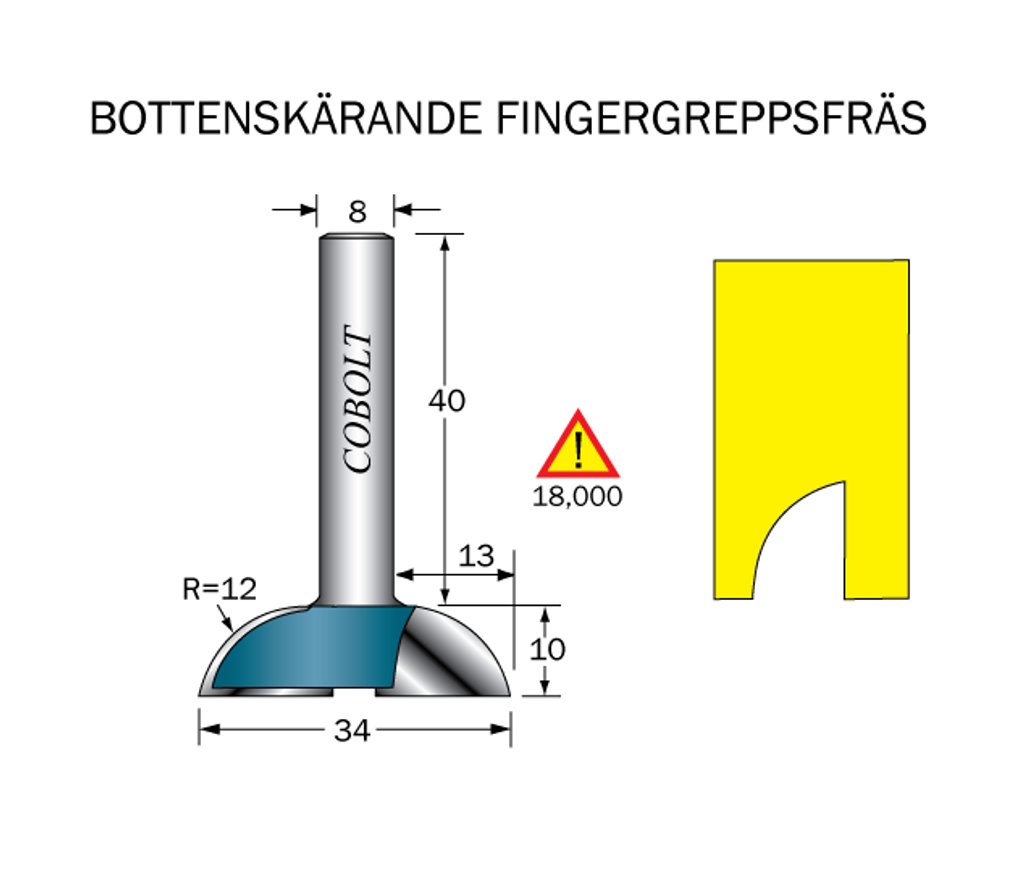 Cobolt Fingergreppsfräs D=34 L=10 R=12 S=8
