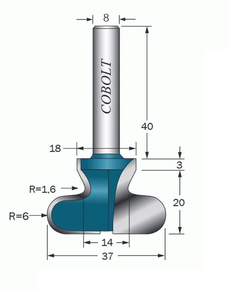 Cobolt Fingergreppsfräs D=37 R=6 S=8