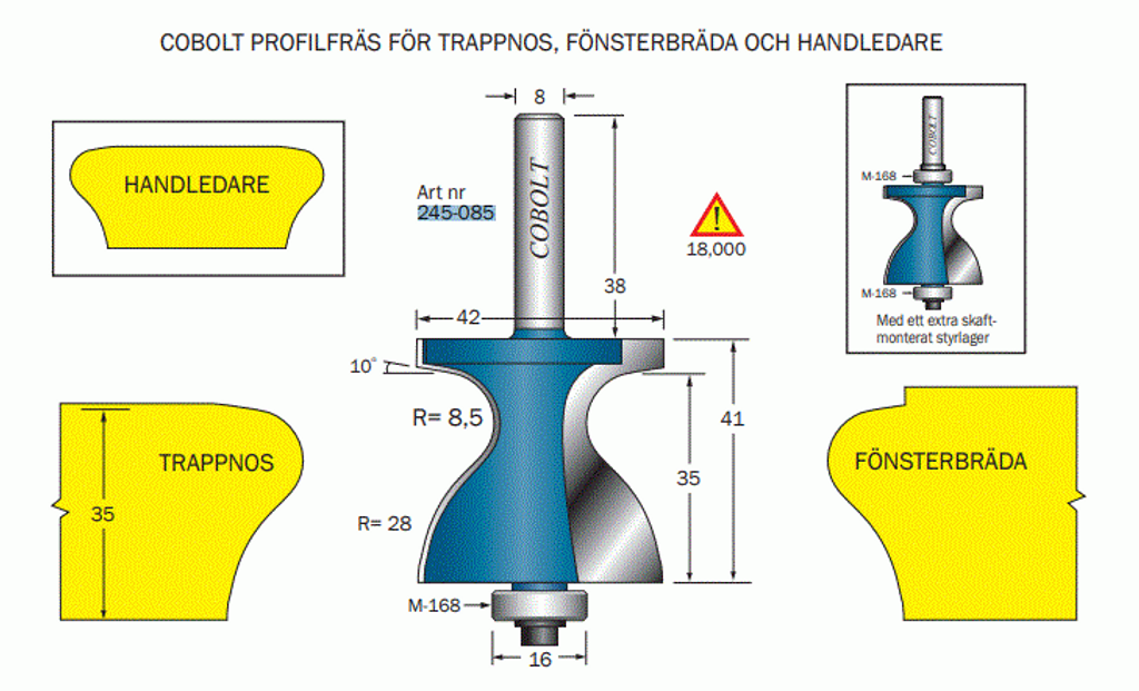 Cobolt profilfräs för att fräsa t.e.x trappnos, fönsterbräda och handledare.