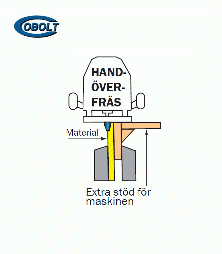 Frisfräsar i verktikalutförande (8mm spindel). Stationärt montage rekommenderas. Använd högt anslag för säkert stöd av spegelstycket. Kör lite i taget.