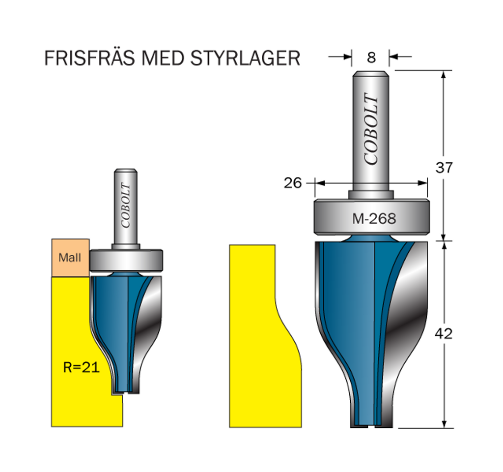 Cobolt Frisfräs med lager R=21 D=26 L=42 S=8