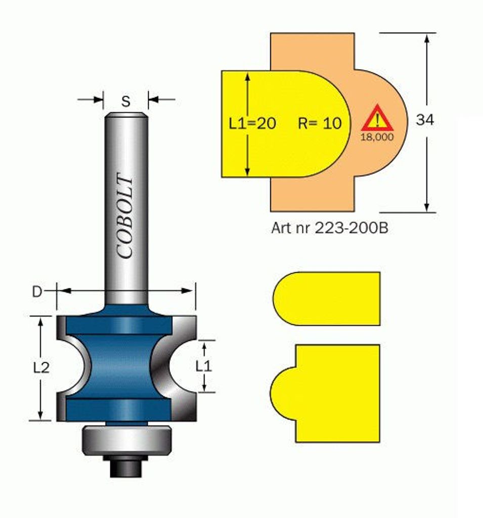Cobolt Halvstavfräs R=10 L1=20 L=34 D=36 S=8