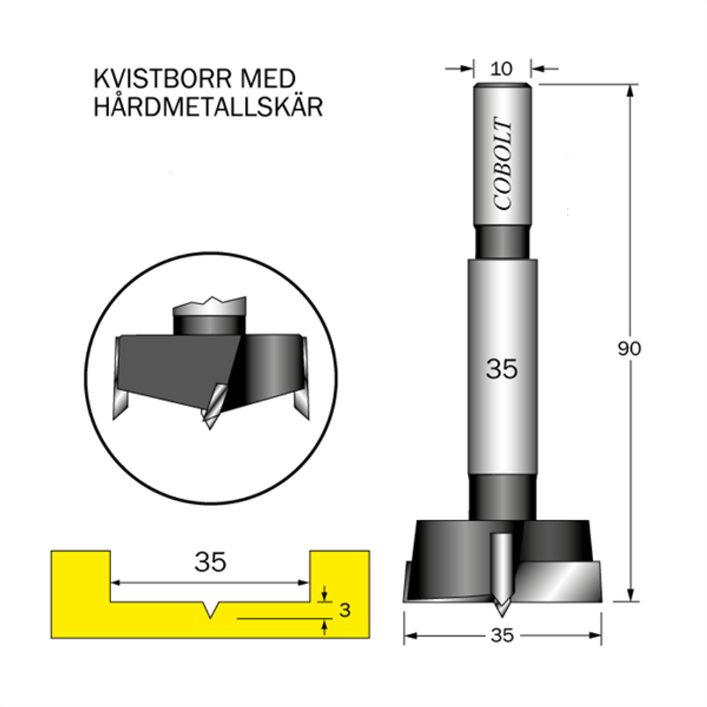 Cobolt HM Kvistborr D=35 TL=90 S=10