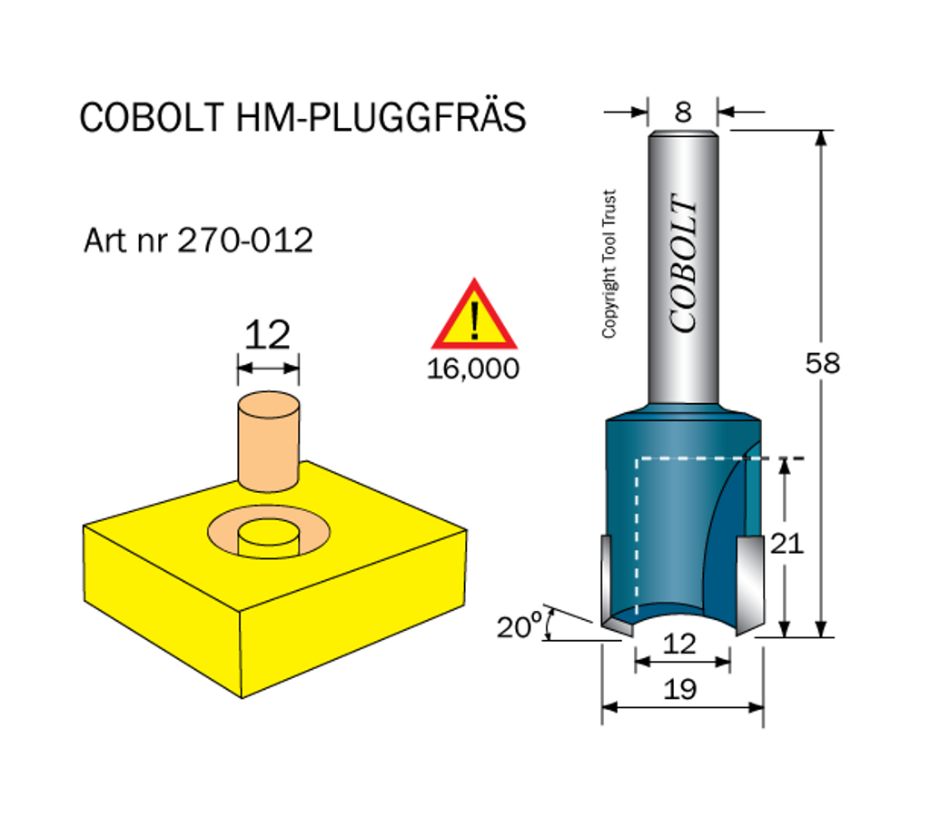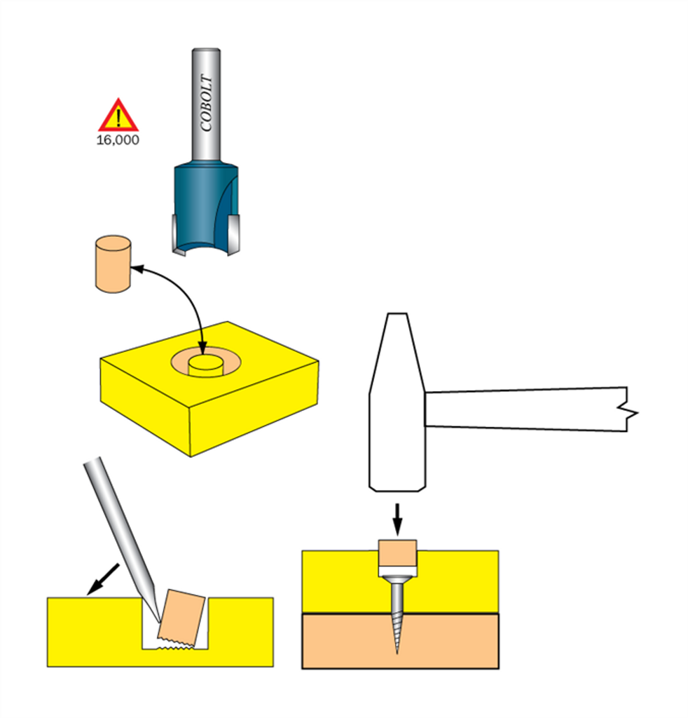 Cobolt pluggfräsar & kvistborr med hårdmetallskär. Cobolts HM Pluggfräsar/tappborrar för tillverkning av träpluggar vid reparationer och dolda montage.