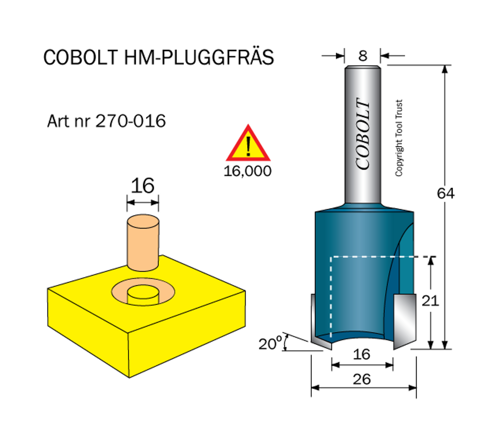 Cobolt pluggfräsar & kvistborr med hårdmetallskär. Cobolts HM Pluggfräsar/tappborrar för tillverkning av träpluggar vid reparationer och dolda montage.