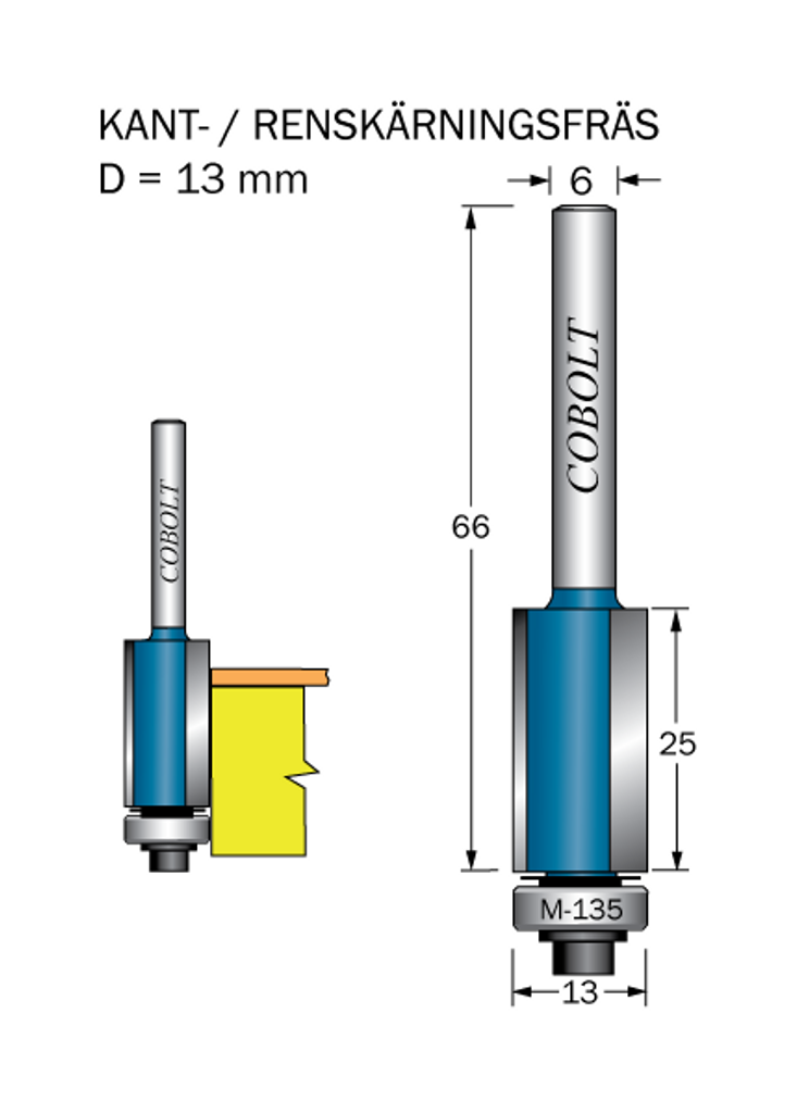 Cobolt Kantfräs D=13 L=25 TL=66 S=6