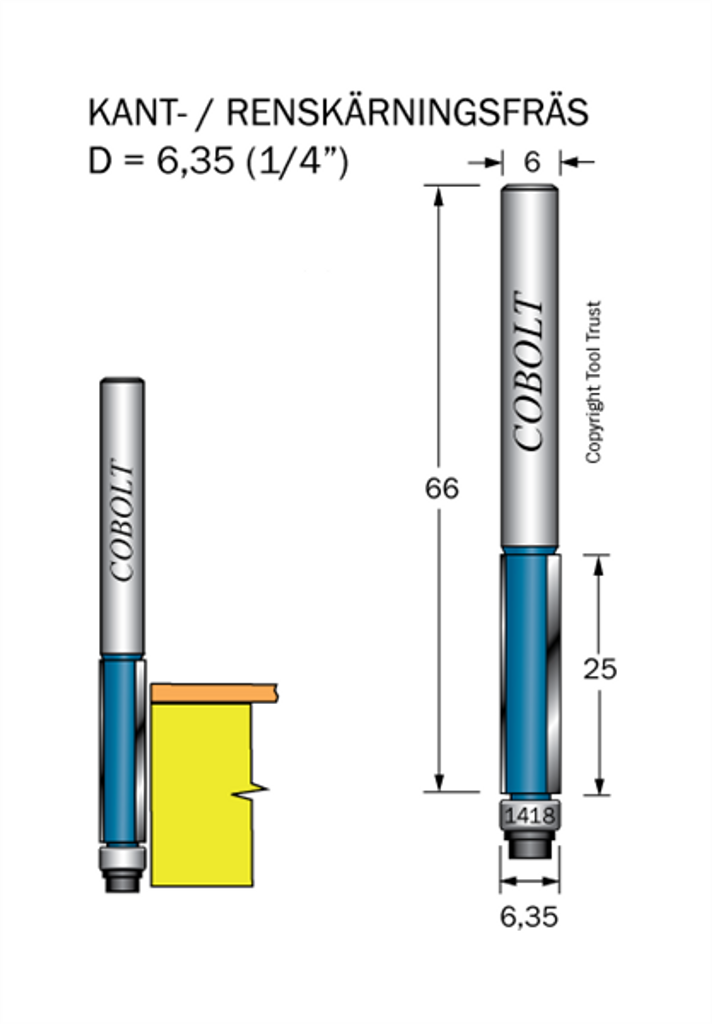 Cobolt Kantfräs D=6.35 L=25 TL=66 S=6