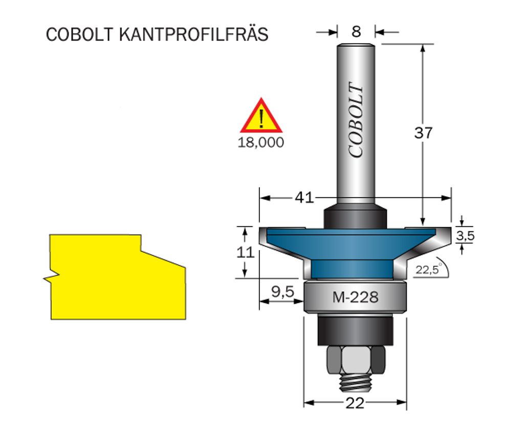 Cobolt Kantprofilfräs 22.5° D=41 L=11 F=9.5 S=8