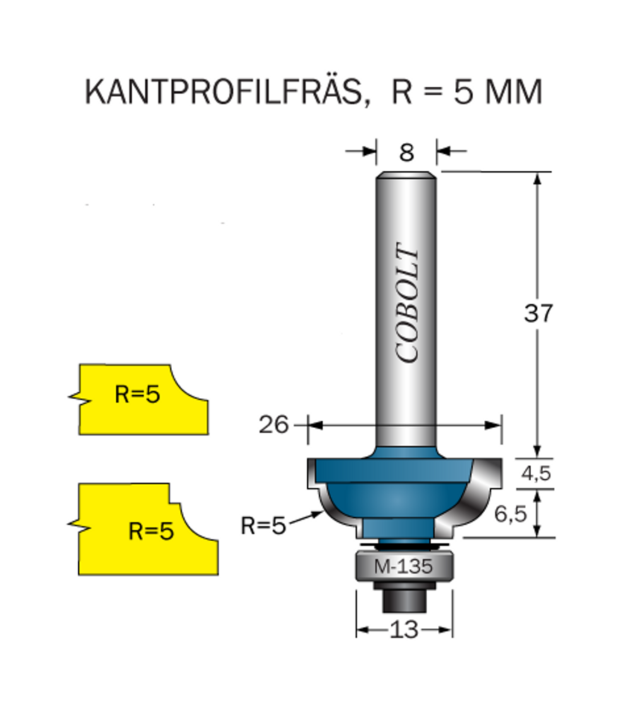 Cobolt Kantprofilfräs CAVETTO R=5 L=11 F=6.5 D=26 S=8