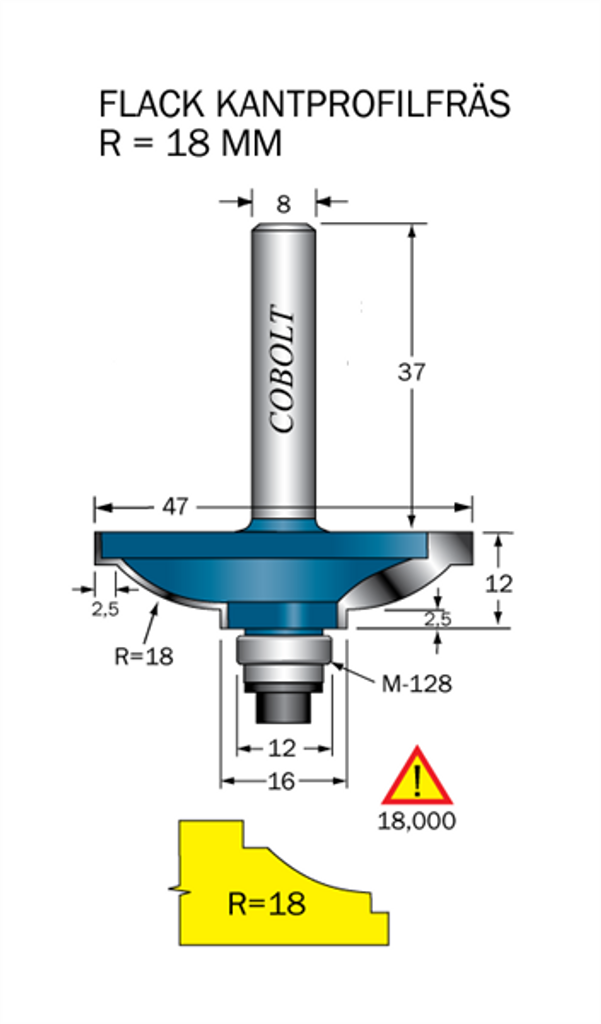 Cobolt Kantprofilfräs R=18 L=12 F=17.5 D=47 S=8