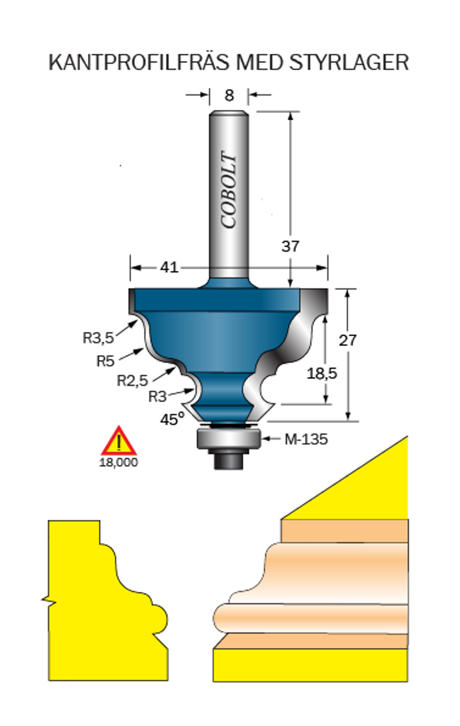 Cobolt Kantprofilfräs R=3.5/R5/R2.5/R3 D=41 L=27 S=8