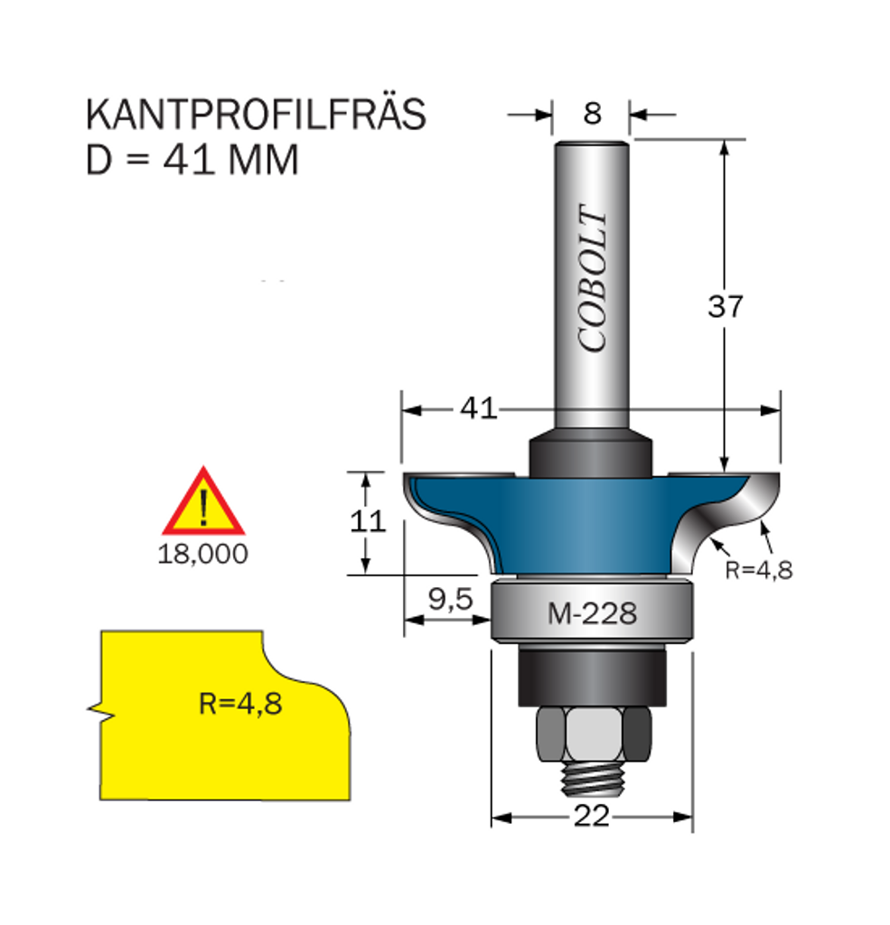 Cobolt Kantprofilfräs R=4.8 D=41 L=11 F=9.5 S=8