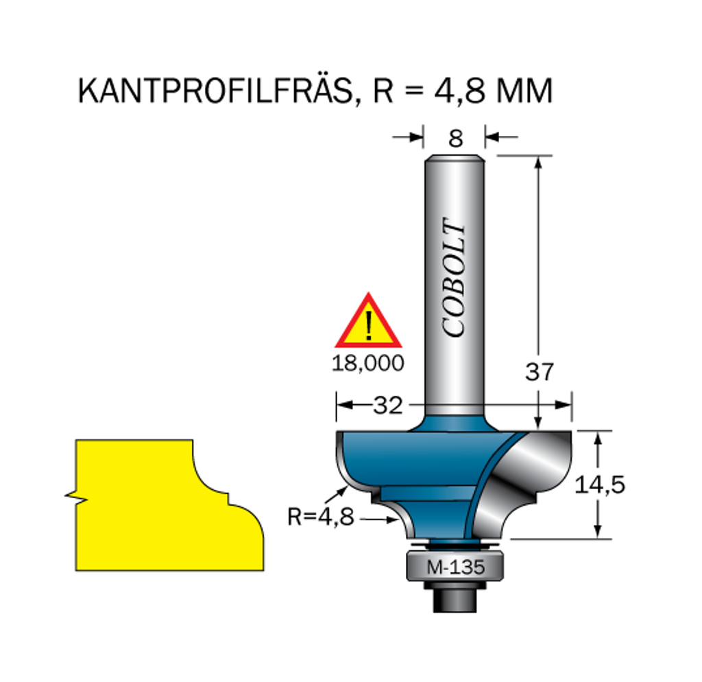 Cobolt Kantprofilfräs R=4.8 L=14.5 F=9.5 D=32 S=8