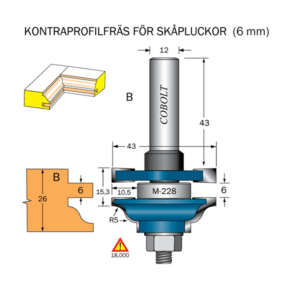 Cobolt Kontraprofilfräs B skåplucka D=43 D=43 Not=6 S=12
