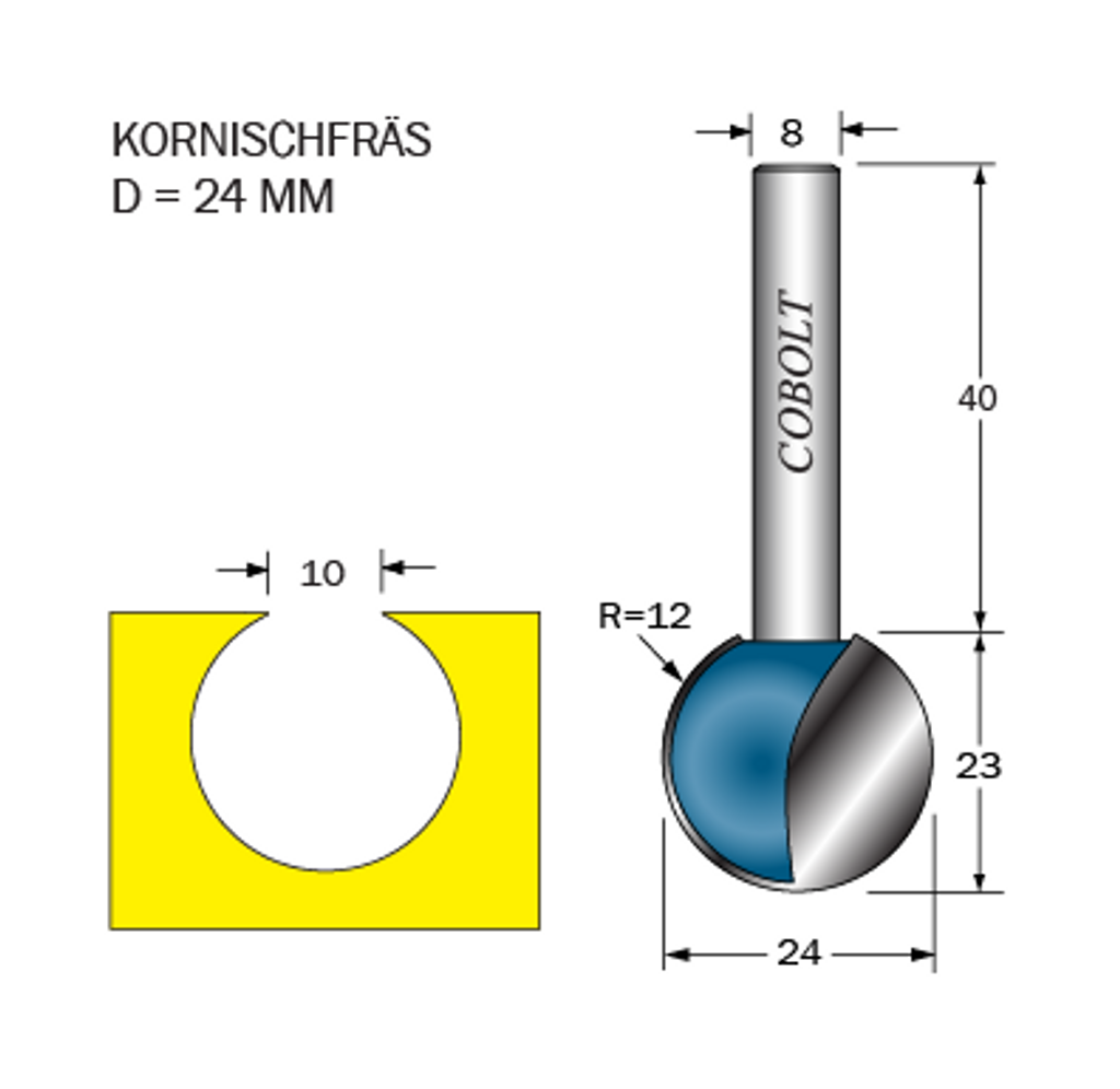 Cobolt Kornischfräs R=12 D=24 L=23 S=8