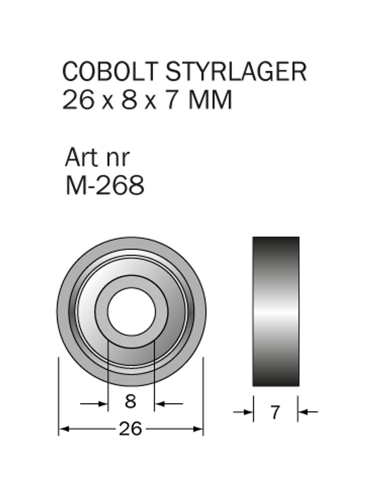 Cobolt kullager (styrlager) för frässtål. Cobolt Kullager 26 x 8mm