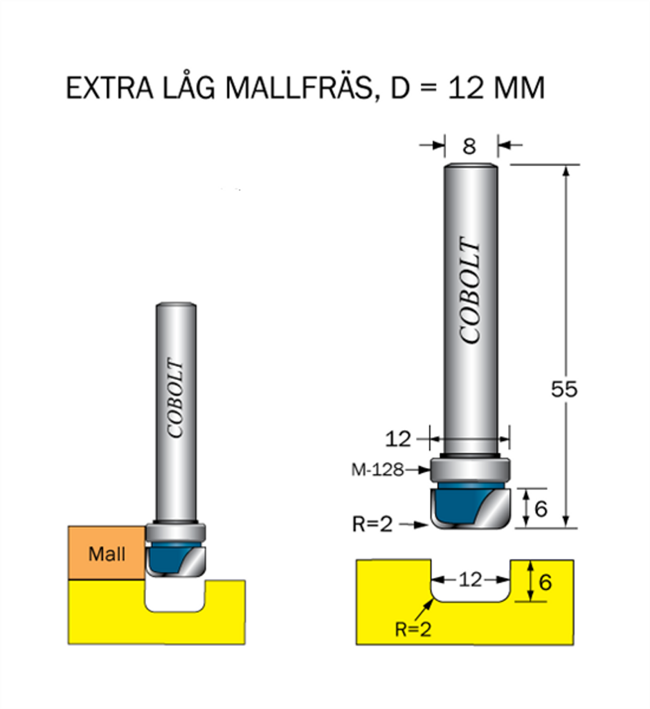Cobolt Mallfräs med lager R=2 D=12 L=6 S=8