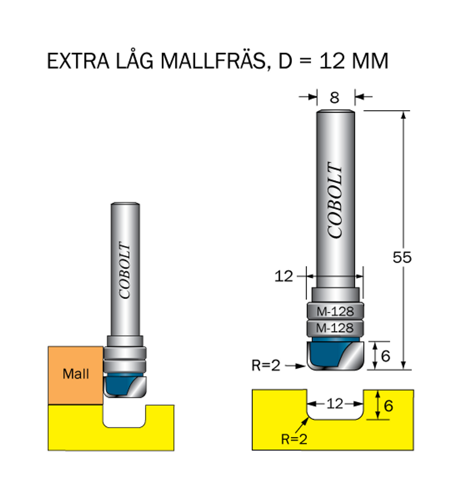 Cobolt Mallfräs med två lager R=2 D=12 L=6 S=8