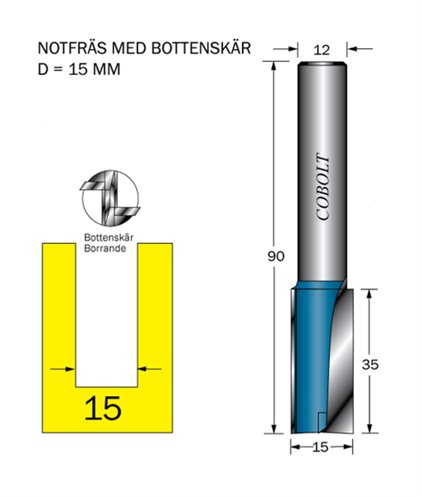 Cobolt Notfräs D=15 L=35 TL=90 S=12