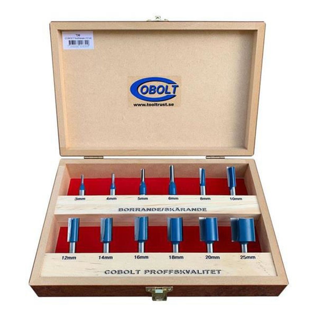 - Samtliga fräsverktyg i satsen har skaftdiameter 8 mm.
