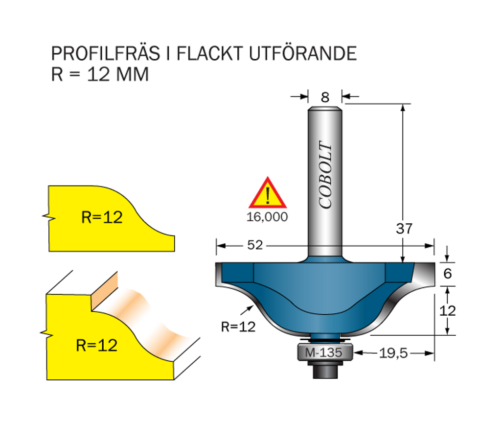 Cobolt Profilfräs dubbelradie R=12 L=18 F=19.5 D=52 S=8