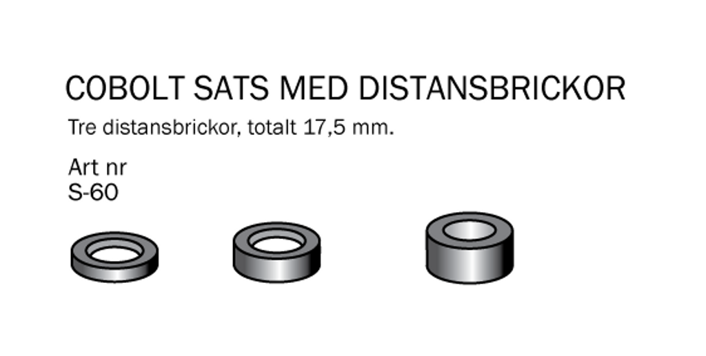 Cobolt S60 är en sats med distanser på 3, 6 & 8,5mm. Vilket ger totalt 17,5mm.
