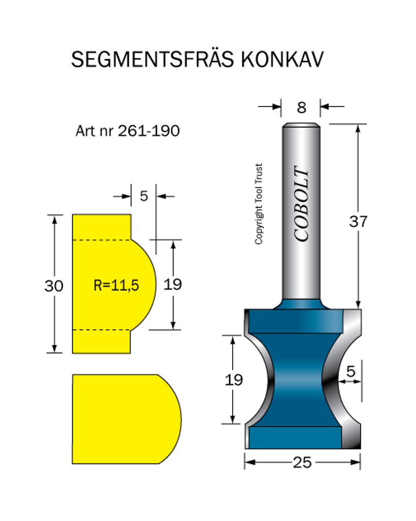 Cobolt Segmentfräs L=19 R=11,5 D=25 S=8
