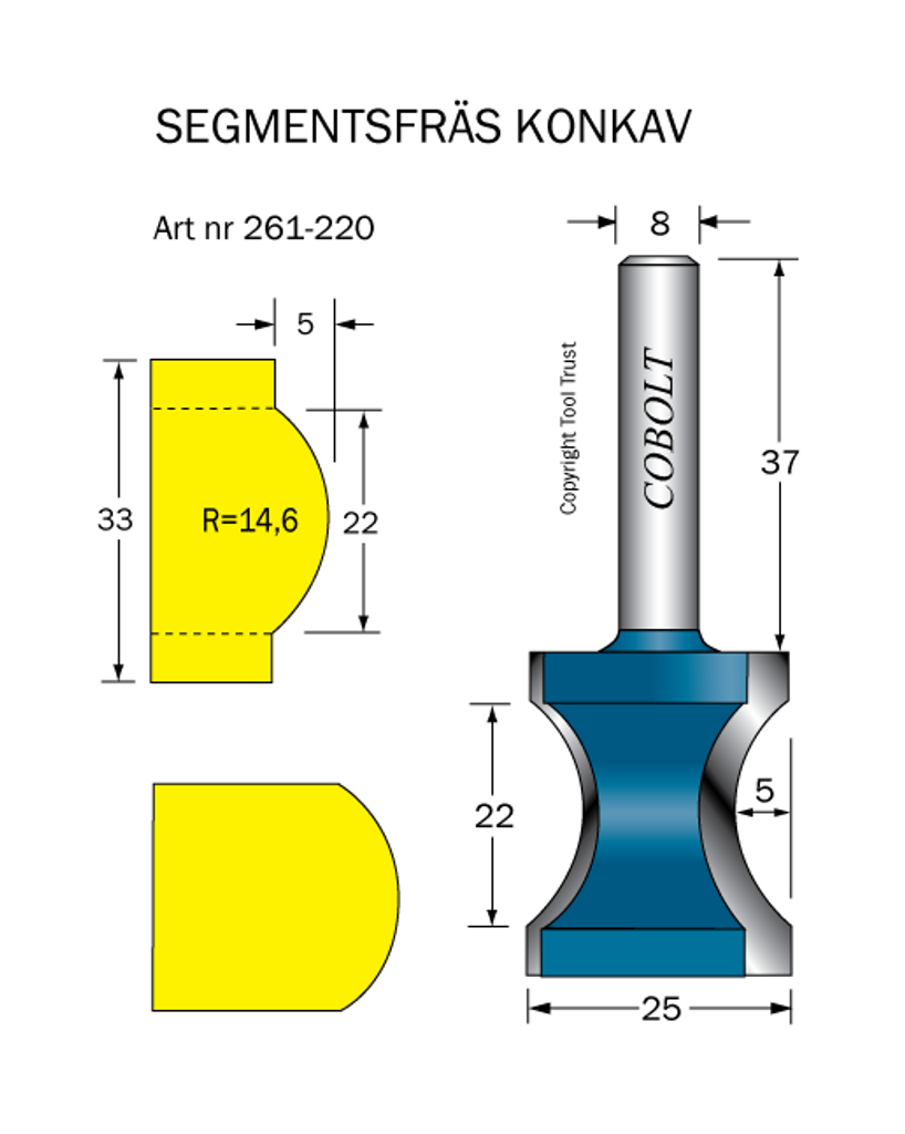 Cobolt Segmentfräs L=22 R=14,6 D=25 S=8
