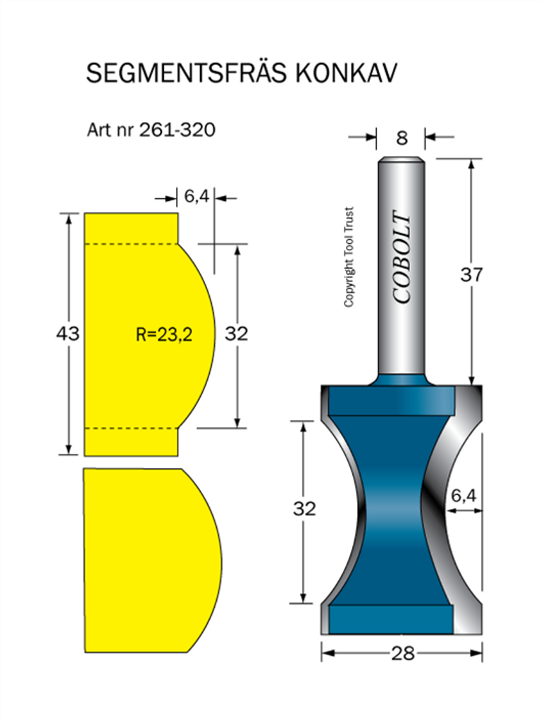 Cobolt Segmentfräs L=32 F=6,4 R=23,2 D=28 S=8