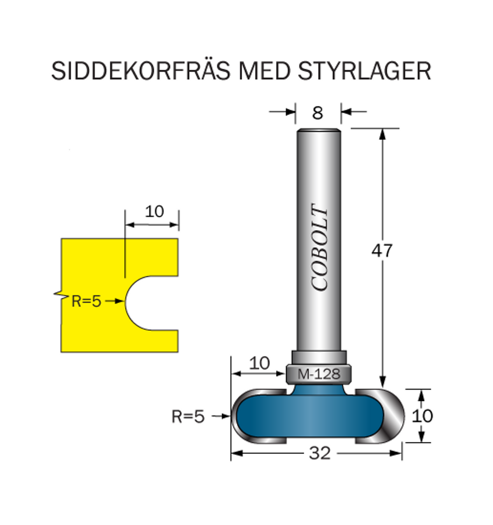 Cobolt siddekorfräs med skaftmonterat styrlager.