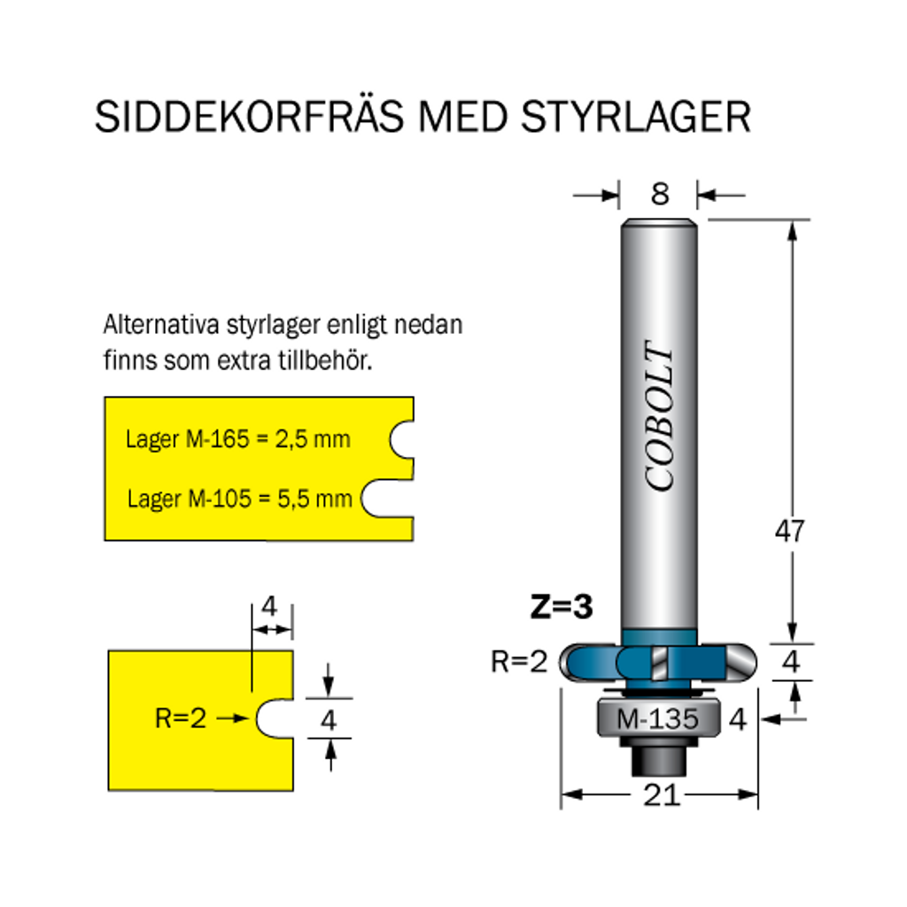 Cobolt Siddekorfräs R=2 F=4 L=4 D=21 S=8