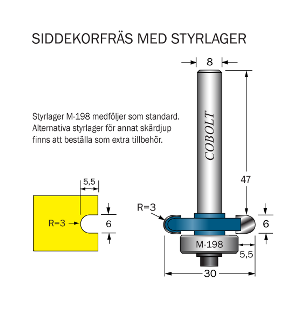 Cobolt Siddekorfräs R=3 F=5.5 L=6 D=30 S=8