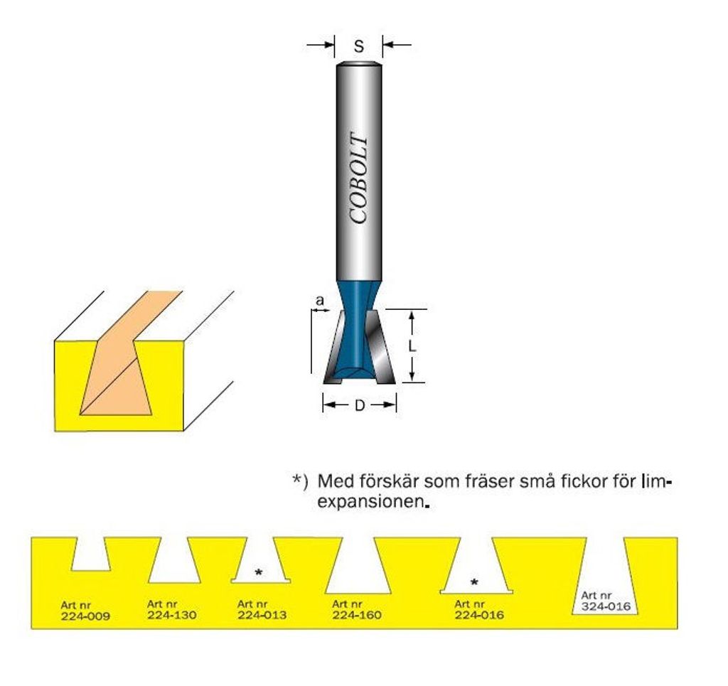 För sinkfräsning vid sammanfogning av lådor, skåp etc.