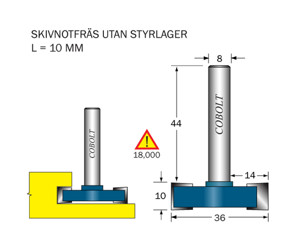 Cobolt Skivnotfräs L=10 D=36 S=8