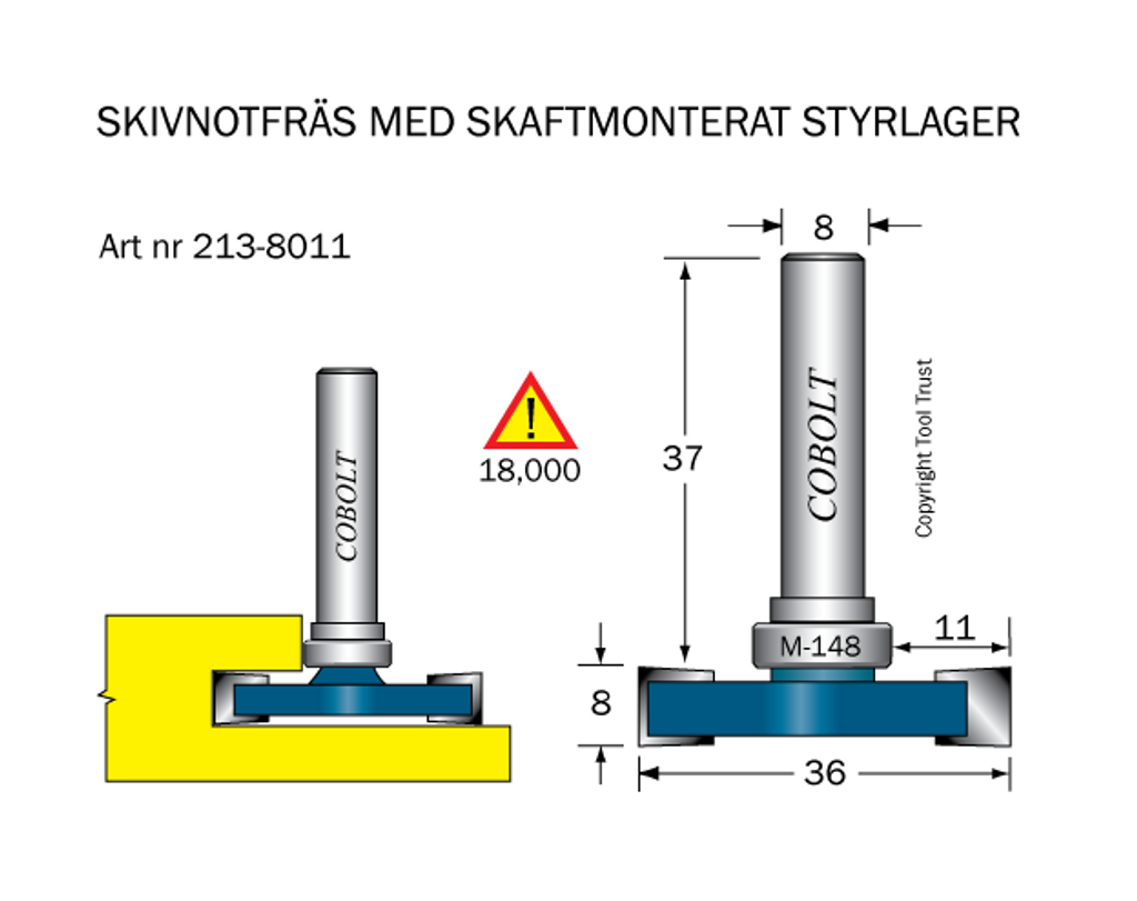 Cobolt Skivnotfräs L=8 F=11 D=36