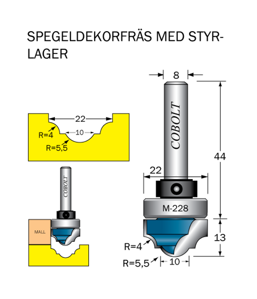 Cobolt Spegeldekorfräs D1=22 D2=10 R1=4 R2=5.5
