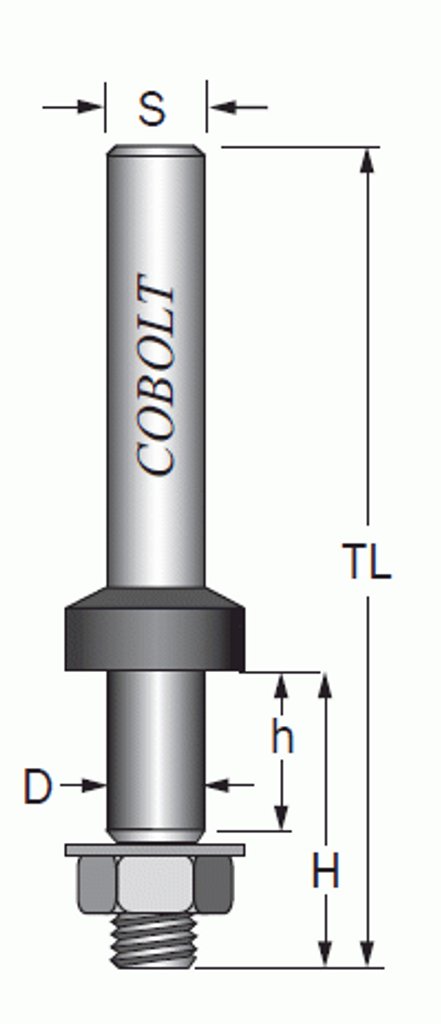 Cobolt Spindel för skivnotstål. Kom ihåg att beställa distanser till spindeln för att fylla utrymmet mellan mutter och mothåll. Vi rekommenderar minst 1st artikelnr S-50 (=20mm)