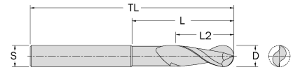 Cobolt Spiralfräs Ballnose D=3 L=12 TL=50 S=6