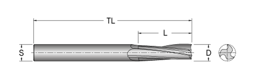 Spiralfräs med flack stigning. 3-skärig, positiv.