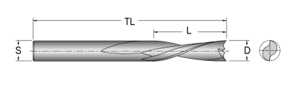 Spiralfräs i solid hårdmetall som lämpar sig för bearbetning av alla träslag, MDF, spånskiva, kompositer, glasfiber, aluminium och olika sorters plast.