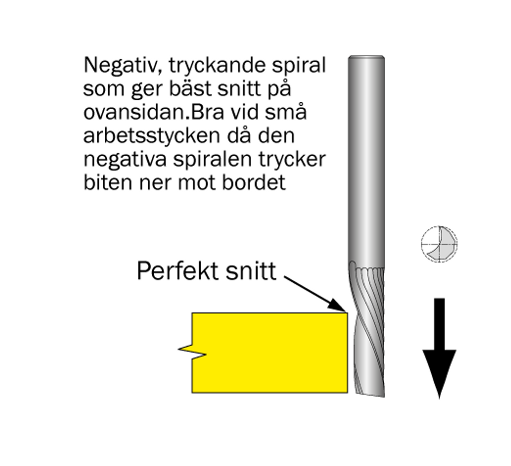 - Utförande med negativ / nedåtskärande / tryckande.
